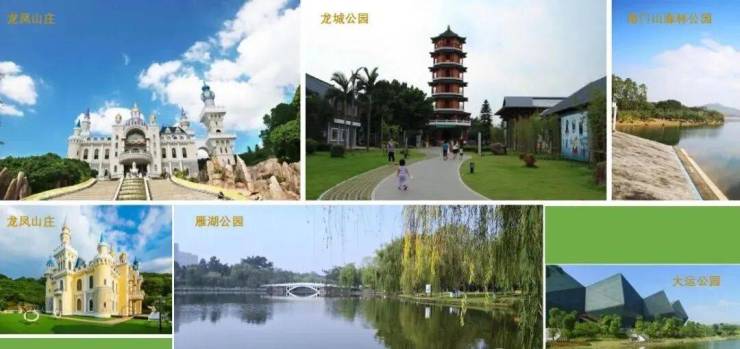休闲配套:龙凤山庄旅游度假山庄、南门山森林公园、碧湖森林公园、雁湖公园、凤凰山公园、龙城公园等多公园环绕,生态资源丰富
