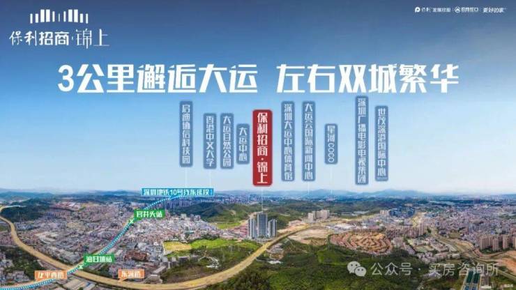 保利招商锦上位于天安数码城旁,深入深圳腹地,三面环深。5公里范围可直接享受龙岗大运、深圳平湖以及凤岗中心三大城市中心区所有配套。