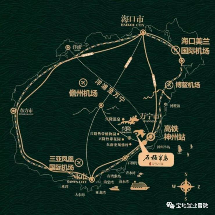 石梅半岛南下三亚86公里,车程60分钟,北上海口158公里,车程90分钟。离兴隆镇8公里车程12分钟。离海5.9公里车程10分钟,农贸市场800米,步行10分钟。神州高铁站7公里车程10分钟。奥特莱斯5公里车程7分钟。