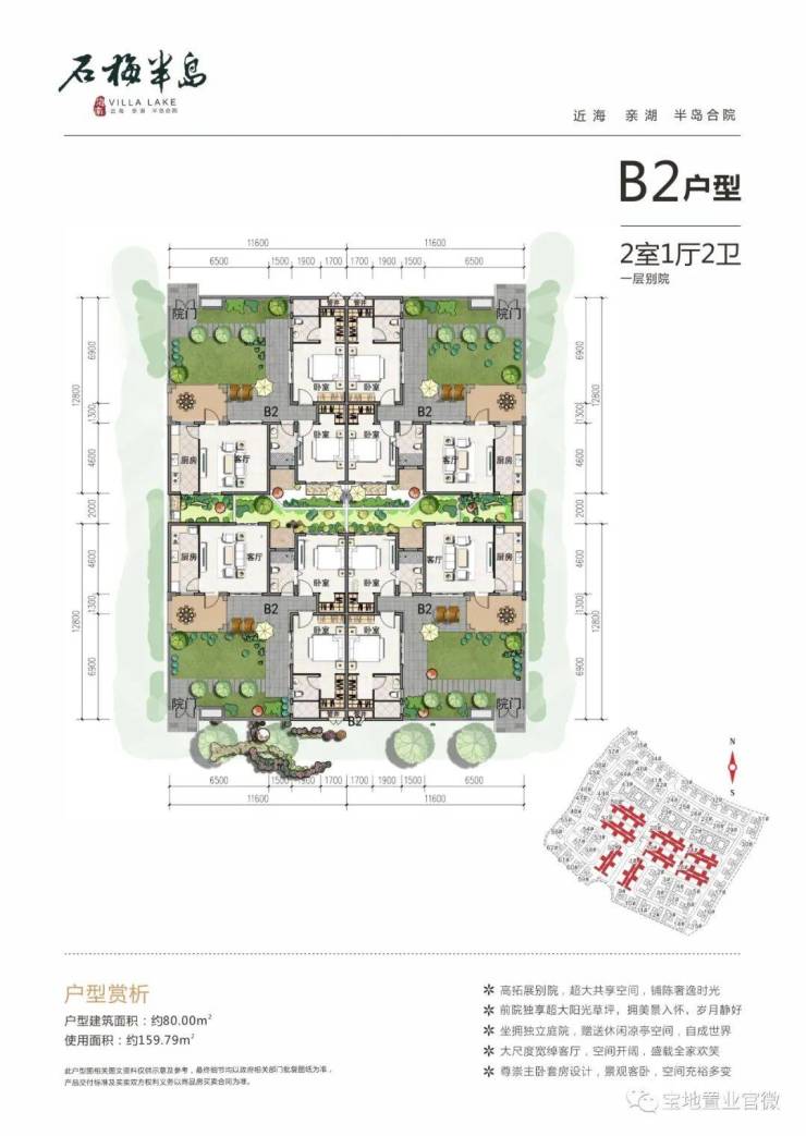 平层合院:建筑面积80平方,院子赠送64平,2房2卫