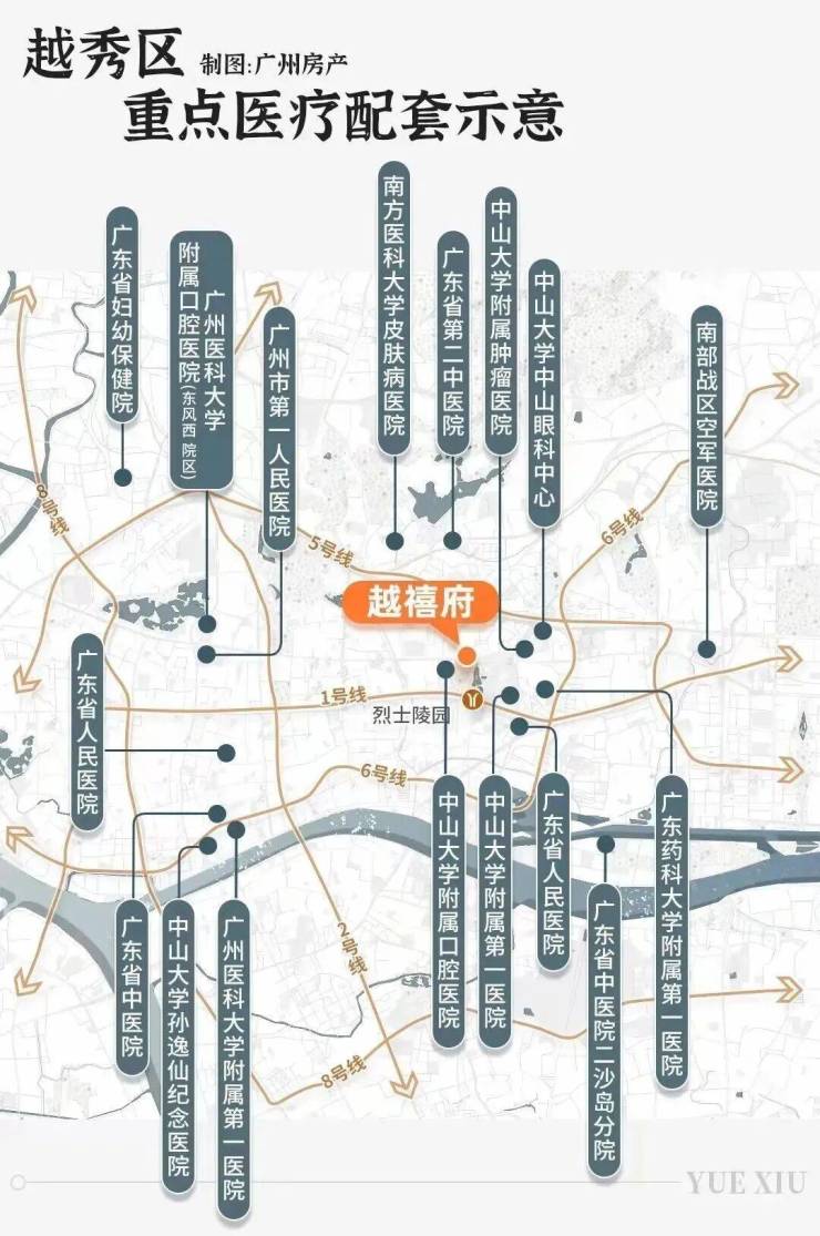 越秀区内有14家知名三甲医院(车程10分钟内),占全市数量的约40%