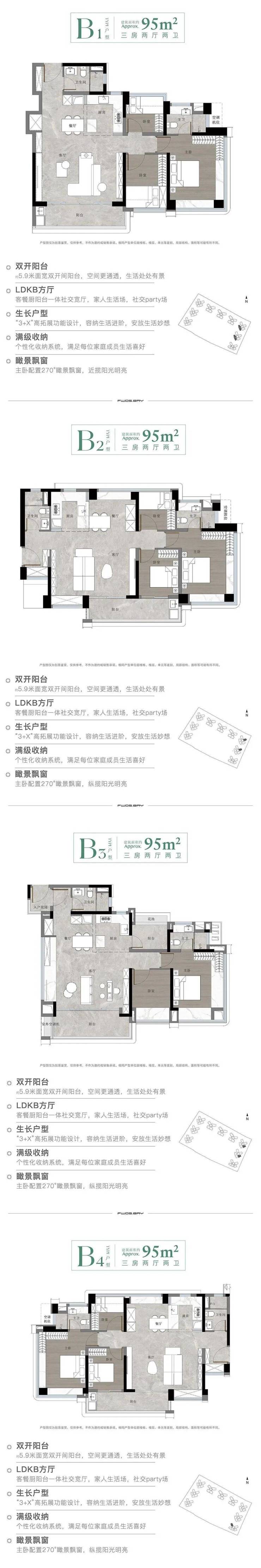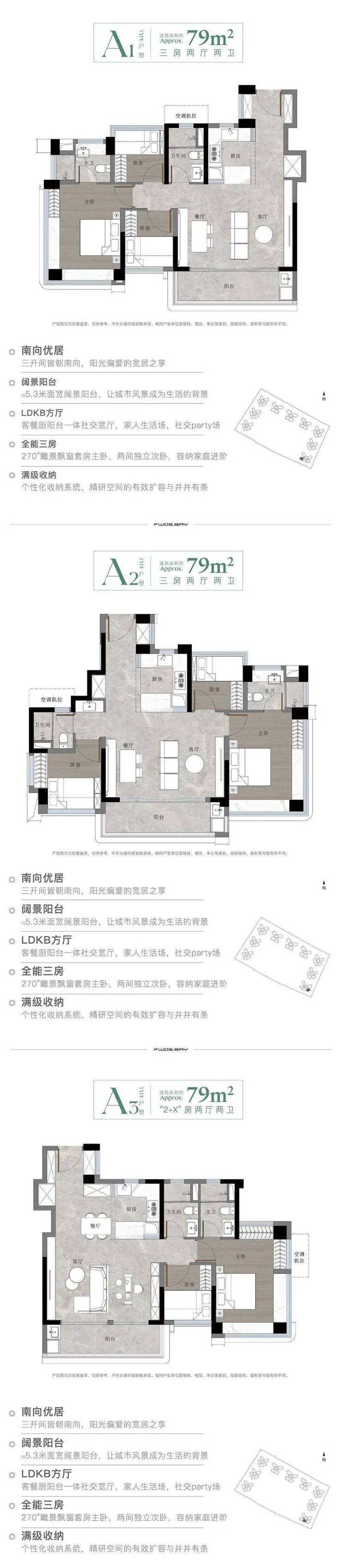 所有户型均为南向设计,使用率超100%,并配备大阳台或宽景阳台