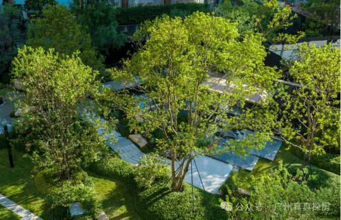 一方面,是对圆形的利用,因为圆天生有聚合效应,这给了小区凝聚力。另一方面,则是禅意空间,木栈道、几块石头,几棵树,就能营造出这样的氛围,但看似随意的摆放,其实大有讲究。