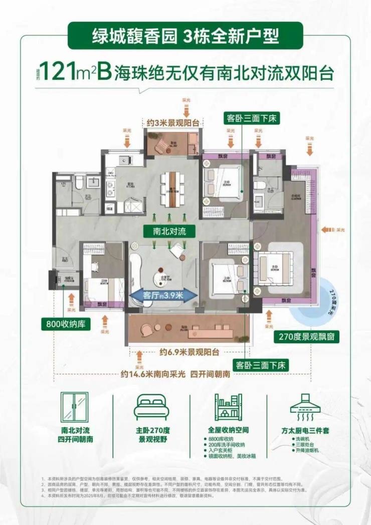 ◎面积段:约84-130㎡全南向·超高使用率·新规三至四房