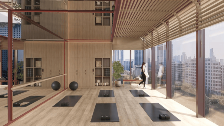 24小时健身区&瑜伽室,拥有正面超25米的落地玻璃,每一次运动均可俯瞰城市繁华景色。