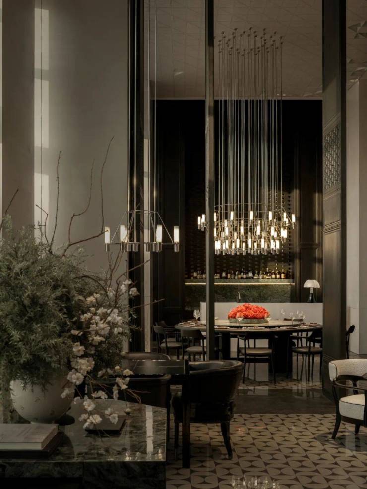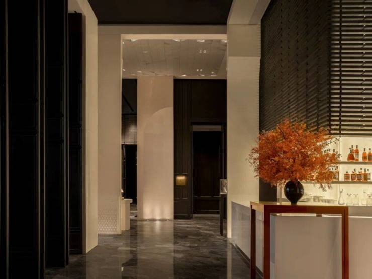 从 落客区的外立面到1F 首层入口大堂,再到 7F 的隐江 CLUB 会所与健身层,DIA 负责所有室内设计。这些空间在前期作为项目展示用,正式营业后将作为业主的公共club。