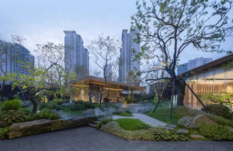 路劲美的隽樾府匠心独运,以白云山山庄旅社为设计灵感蓝本,提取白云山山庄旅社空间设计结构,打造“前街、中庭、后院”三重归家礼序。以岭南园林的方式诠释着粤式传统之美,呈现现代岭南的庭园设计语境。庭园的景物组织,多考虑原有地形地势及自然环境,以林间水庭为主景基调,运用小中见大的空间对比手法,彰显每个空间的特点,突出岭南庭园的独特魅力。