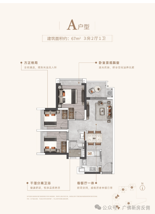 🏆67㎡ | 3房·2厅·1卫🏆