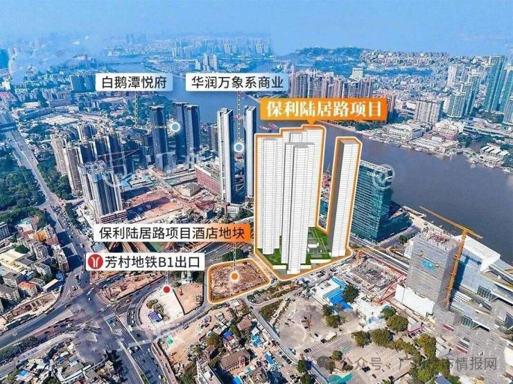 其中,居住地块更靠近江边,前方仅有立白中心,旁边便是三馆一体;商业地块则临近地铁芳村站,拟建造酒店,有消息称可能引入喜来登品牌