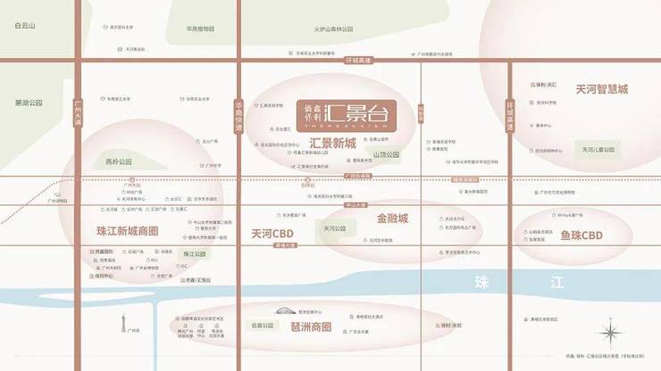 位居天河城央,南近珠江新城,北望火炉山,东望科韵路,西接汇景新城社区两公里景观中轴带,邻近科学城、智慧城、广东奥林匹克体育中心;广园快速、华南快速、深海高速环绕;