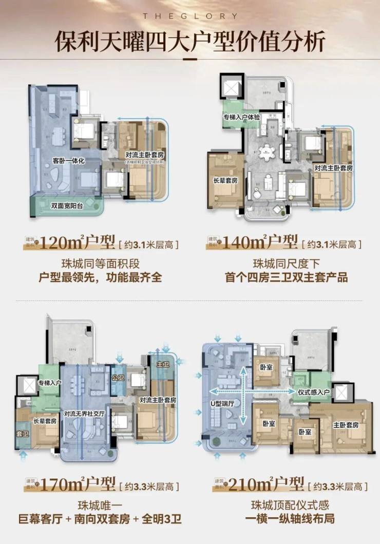 设计好处是既保证了通风、采光,还保障了侧向江景和珠城景观的最大化。
