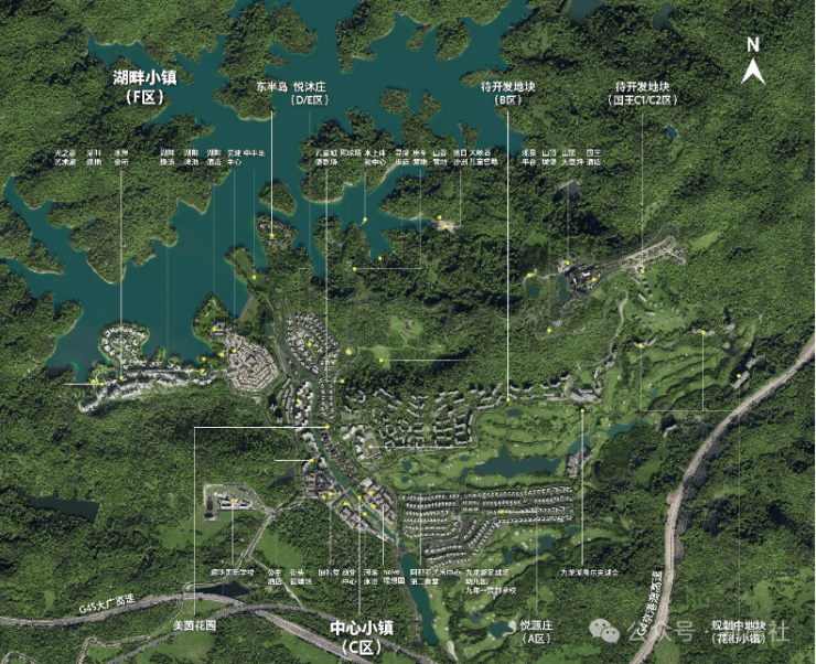 小区配套:国王酒店、公主酒店、栋梁之家、YIN HOTEL、房车营地、高尔夫球会、游艇码头、水上体验中心、湖山栈道、观景平台、落日沙洲、大峡谷、业主食堂、湖畔餐厅、湖畔市集、宿咕XXSHOKU、诚记糖水铺、BRASSTON Pizzaria&Bar、荔轩打边炉、跳海酒馆、BarLotus、DandyroomKTV。