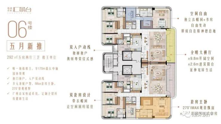 6#为2梯2户,主要分布的户型为292平的五房单位