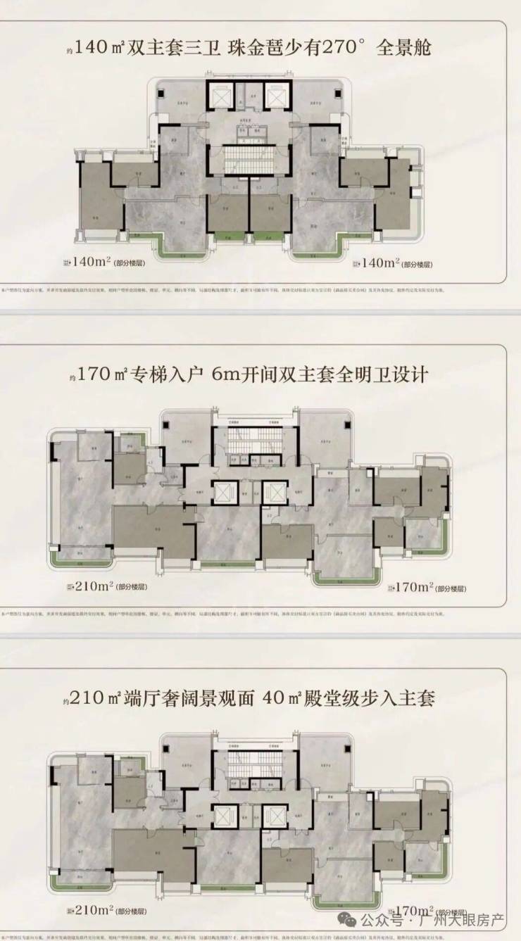 户 型:建面约120-140-170-210㎡云幕平层