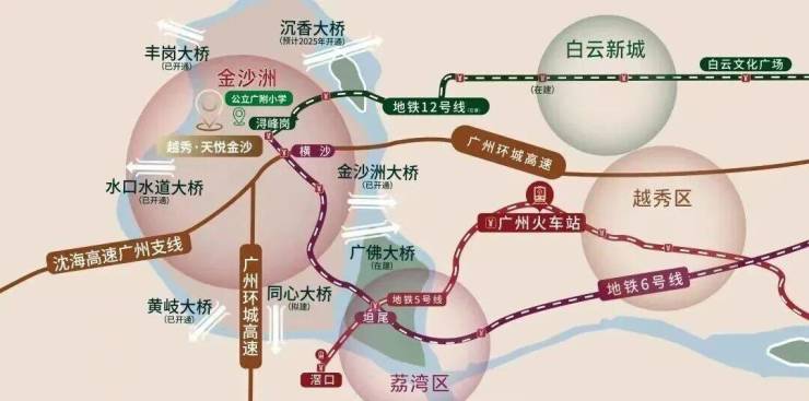 4、交通逐步改善:距离地铁6号线浔峰岗站约2.7公里,楼下有公交总站接驳地铁。未来广佛大桥、沉香大桥等跨江通道开通后,与市中心通勤时间将进一步缩短。