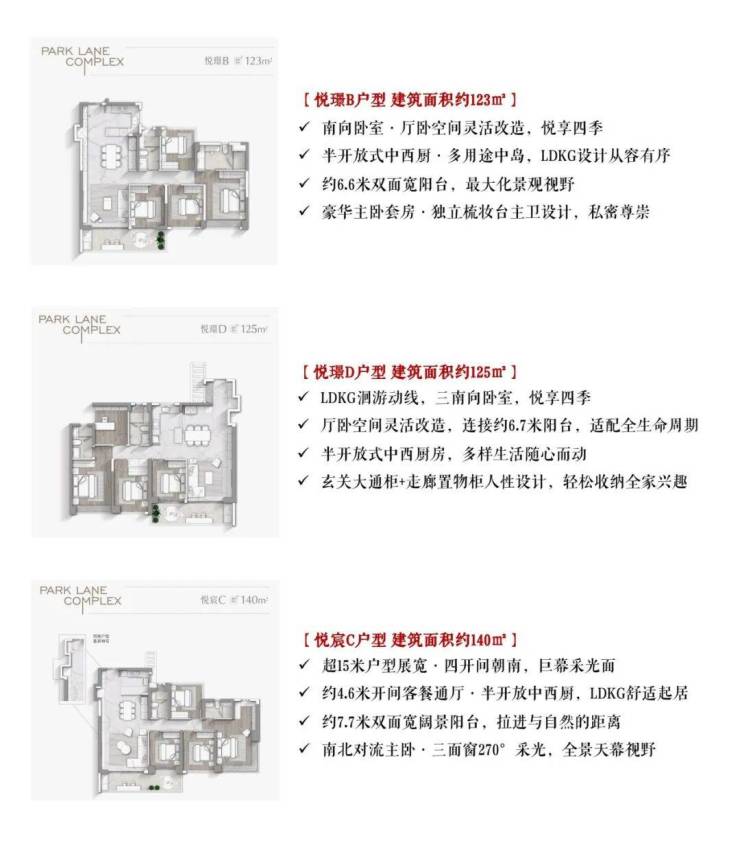 - 主力户型:108-300㎡三至五房,纯改善定位;108/123/140㎡最热销