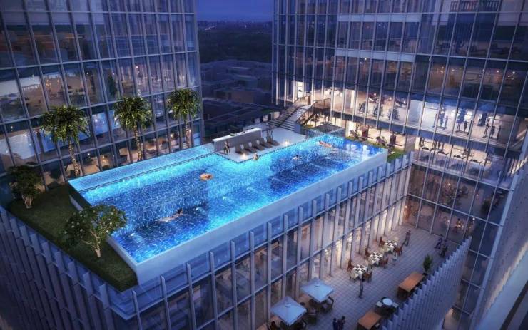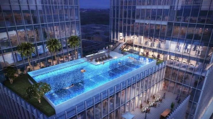 自带空中恒温无边泳池、时尚健身会所等配套,信步可达的高端休闲场所