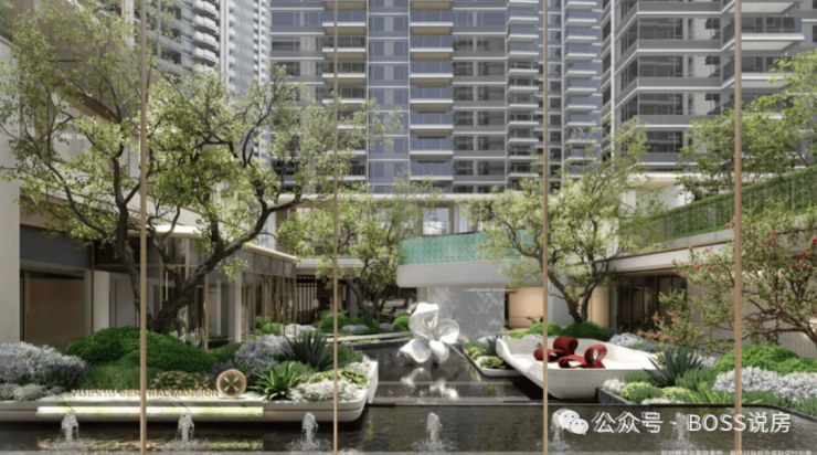 立体园林:社区容积率为 2.6,规划 11 栋住宅,其中 8 栋是 18 层的低密板楼,3 栋是 32 层的塔楼,楼间距宽敞。园林采用立体布局,种植香樟、凤凰木、三角梅等绿植,设置了休闲步道、景观小品、儿童游乐区等,满足不同年龄段业主的休闲需求。