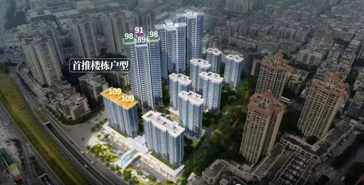越秀鸿璟台项目首推1栋、11栋,11栋主打小户型,即建面约89-92-99㎡三至四房,1栋小高层板楼主打改善,为建面约110-112㎡四房。