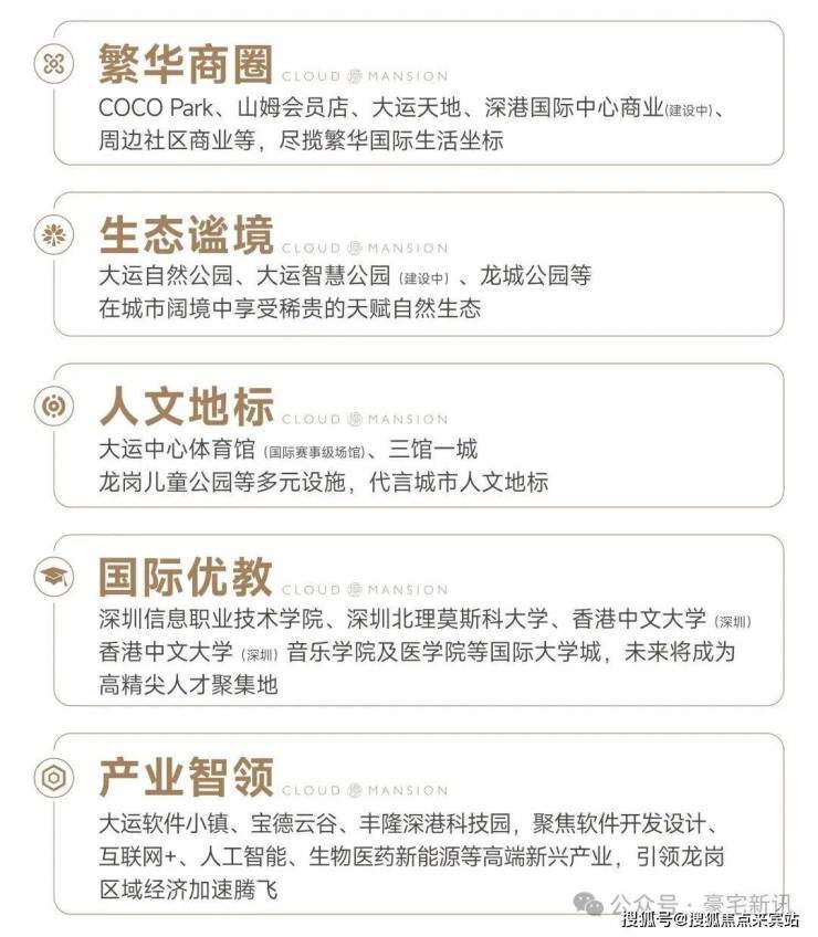 大运新城-深圳东部唯一“城市会客厅”,与前海中心、深圳湾超总、香蜜湖金融街等区域并列深圳六大城市会客厅,汇聚东部大型综合交通枢纽,标杆性文化体育场馆、产业精英商务群、国际大学城等优势,大运新城将成为深圳东部重要发展极点,推动深圳东部增长。