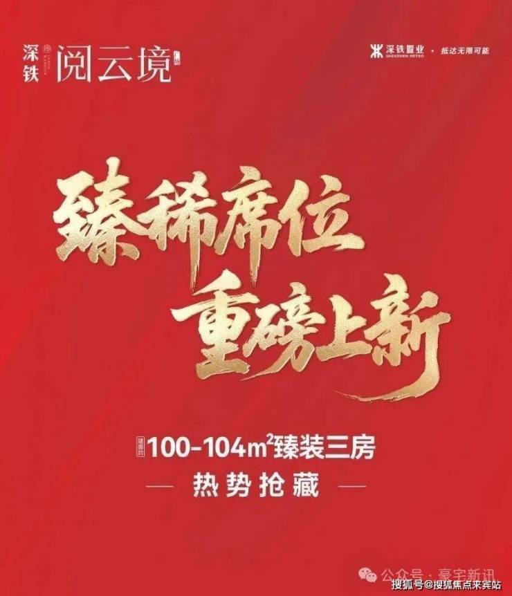 深铁阅云境,作为深铁置业“境系”作品,以前沿理念定义人居标准,精研人居空间尺度,考究生活的每一处细节,敬呈建面约100-104㎡深铁好房,匹配高品质理想生活。