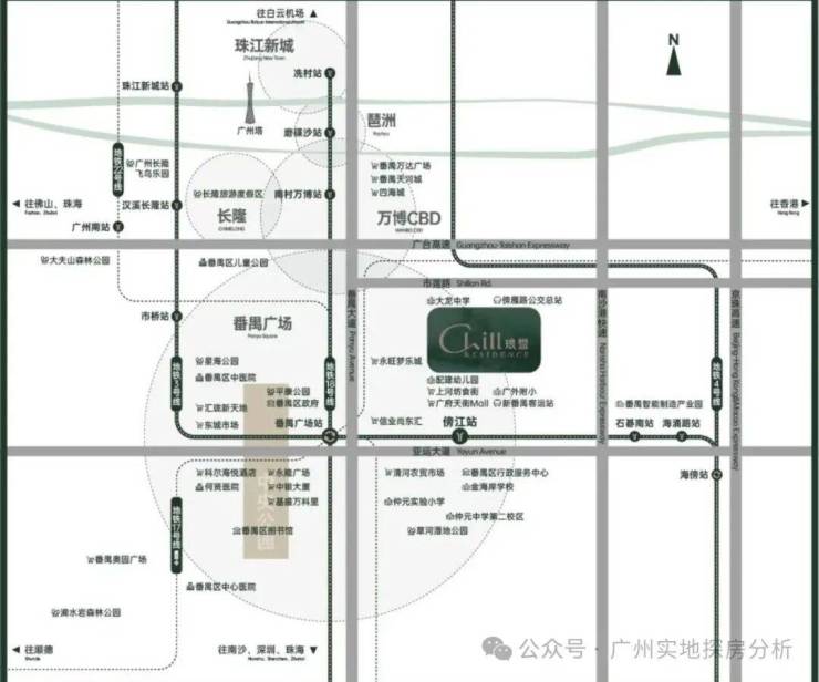 项目位于番禺广场区府板块,就在亚运大道边上,楼盘就在番禺客运站北侧。
