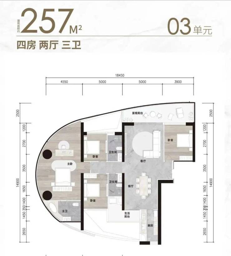 现推售最后一栋超高层住宅A5(51层高),每层约620㎡,户型包括176㎡-187㎡-204㎡-257㎡三至四房大平层江景住宅,符合新政不限购;大部分单套住宅总价介于1300-2000万元,自住投资首选。
