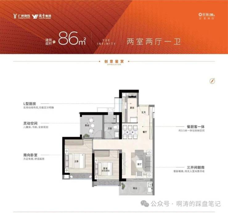 【超宽楼间距 86㎡南向三房 220万起】