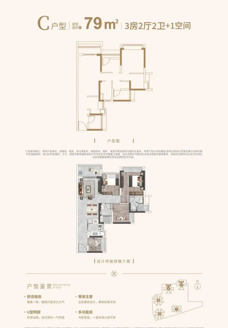 🏆79㎡ | 3房·2厅·2卫+1空间🏆