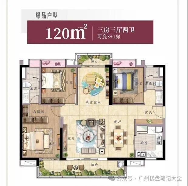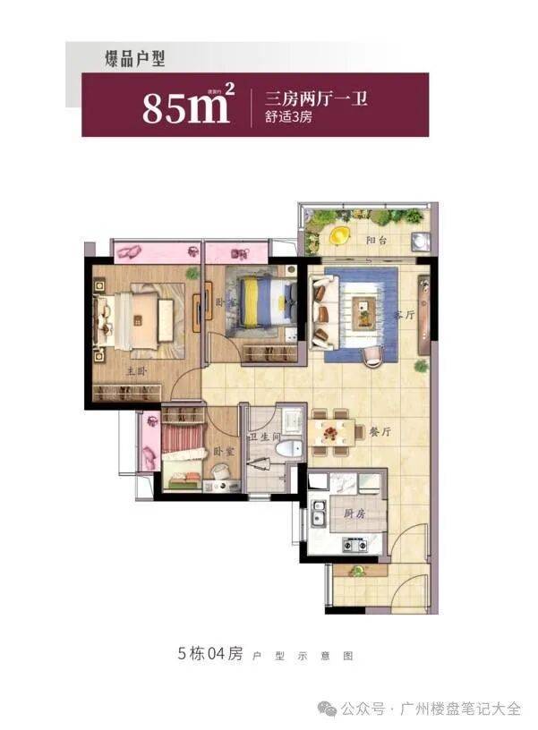 【🏡住宅在售面积】 ️85㎡ 三房一卫,98㎡ 三房两卫;120㎡ 三房两卫(可改3+1);130㎡ 三房两卫