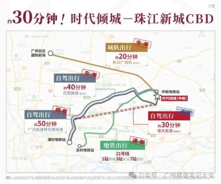 4⃣、自驾车最方便,花莞高速1公里(已开通),增天高速2.5公里,现在30分钟到天河,未来20分钟