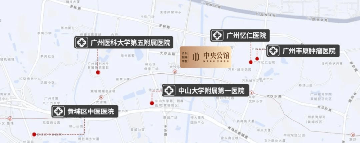 约1.5km即有中山大学附属第一医院东院、广州医科大学附属第五医院为您和家人的健康保驾护航