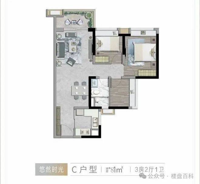 产品户型:住宅81-124㎡(三四房)