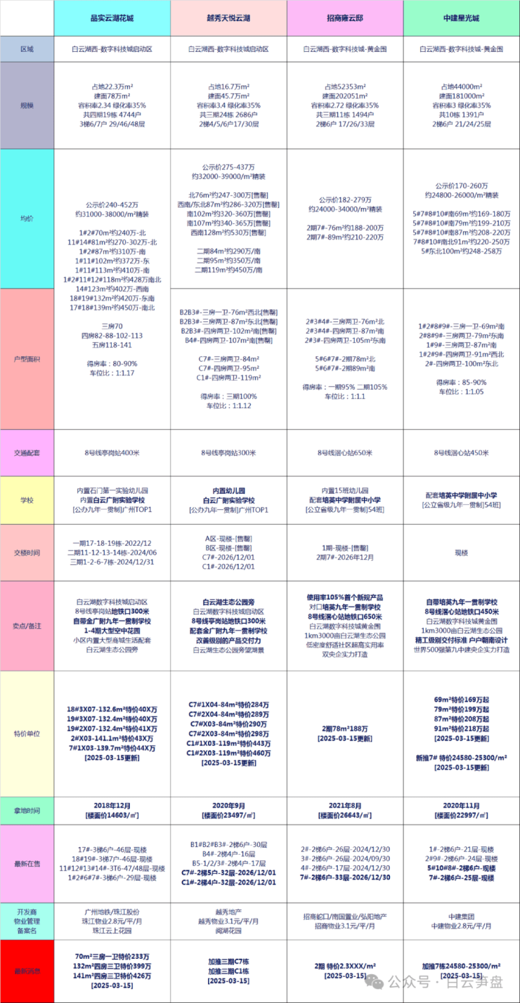 白云湖在售各项目对比: