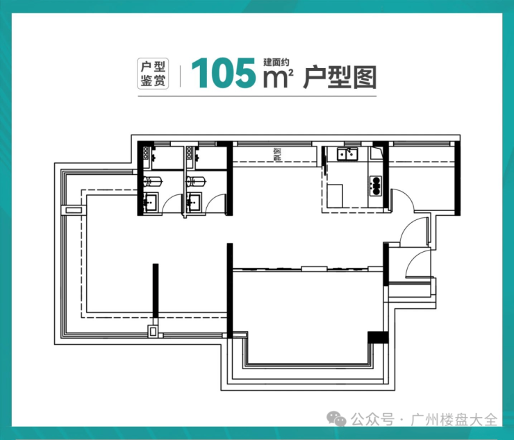 建面约 105㎡这个户型,是入门级改善产品。带入户花园,储物空间更多;餐厅位置有飘窗,或将联动客厅、阳台,形成南北对流。想要住得更舒适,但预算稍紧的买家,可以考虑这个户型。
