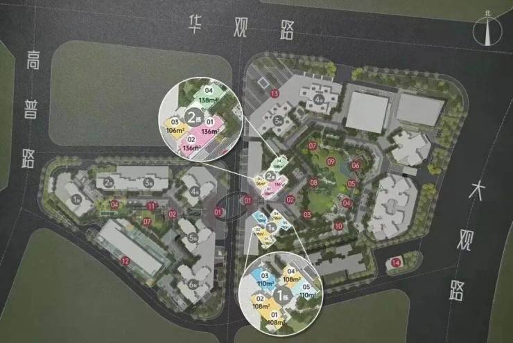 整个项目分两个地块,首推的是东侧地块的1、2栋,也是距离主路最远的两栋,受噪音的影响相对小,容积率3.0,其中1栋是两梯五户30层,2栋是两梯四户31层。