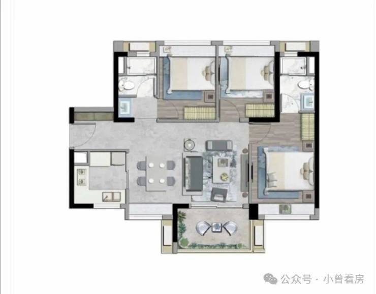 3. 95㎡,三房二卫户型