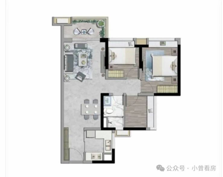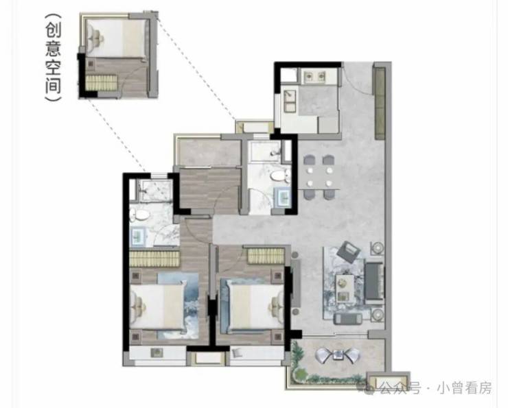 2. 92㎡,三房二卫户型