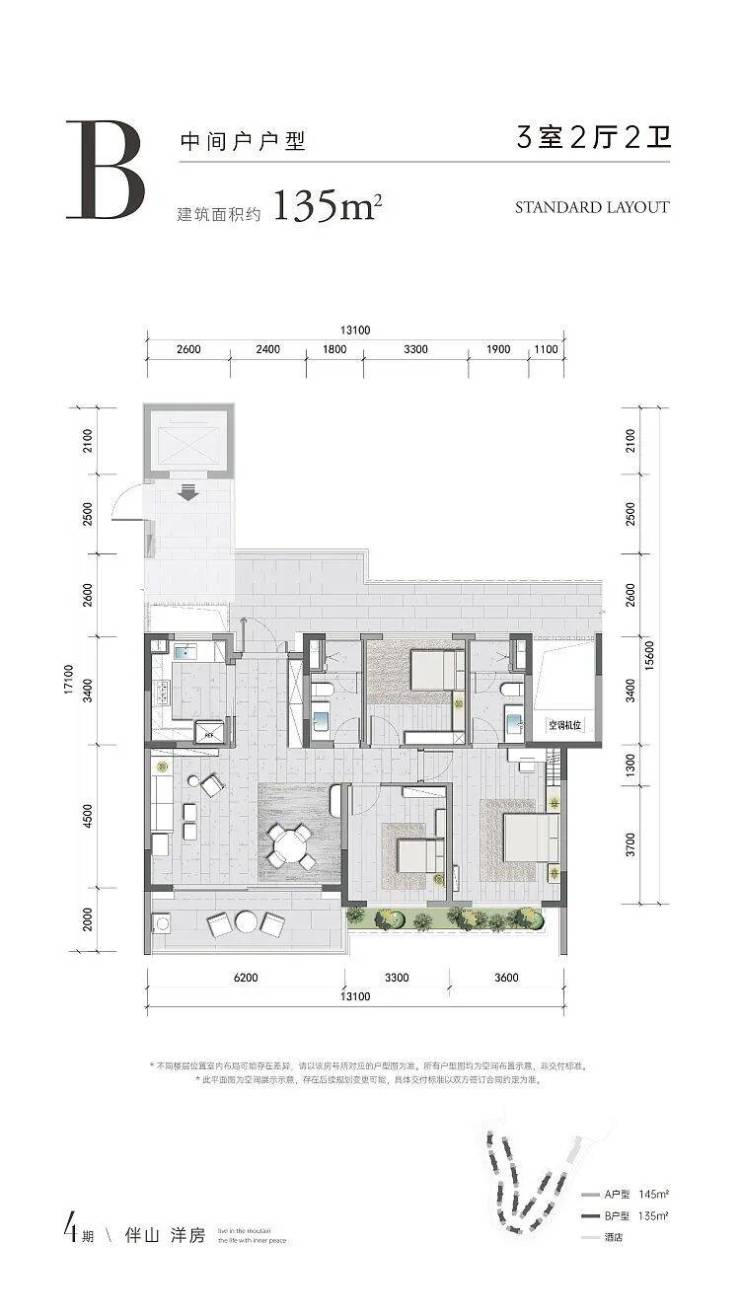此次山之屿推出的 A/B区叠院新品,为建面约172㎡—180㎡的B户型 。