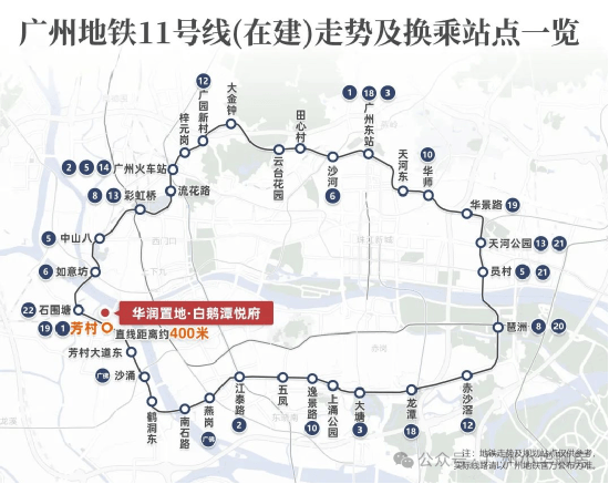 项目距离1号线白鹅潭TOD(芳村站)约400米距离,后期将会有4条地铁交汇,分别是1号线,11号线,22号线,和28号线;
