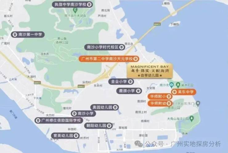 周边还有2公里公立省级南沙小学时代校区已开学。公立执信中学南沙学校已开学4公里。私立英东中学,直线距离约1公里。