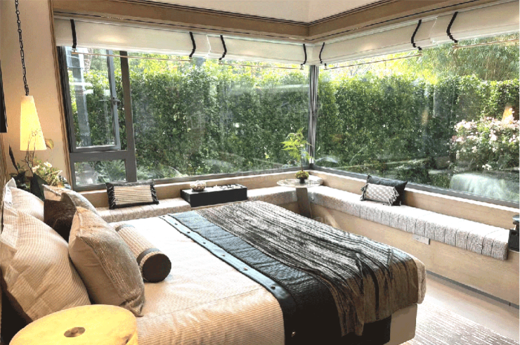 主卧270°飘窗+独立衣帽间:躺在床上就能看晓港公园景观,收纳空间堪比120㎡户型。
