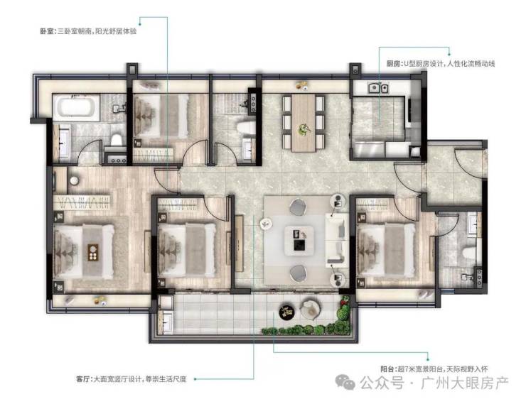 U型厨房,宽尺实用,主卫干湿分离,使用效率大幅提高