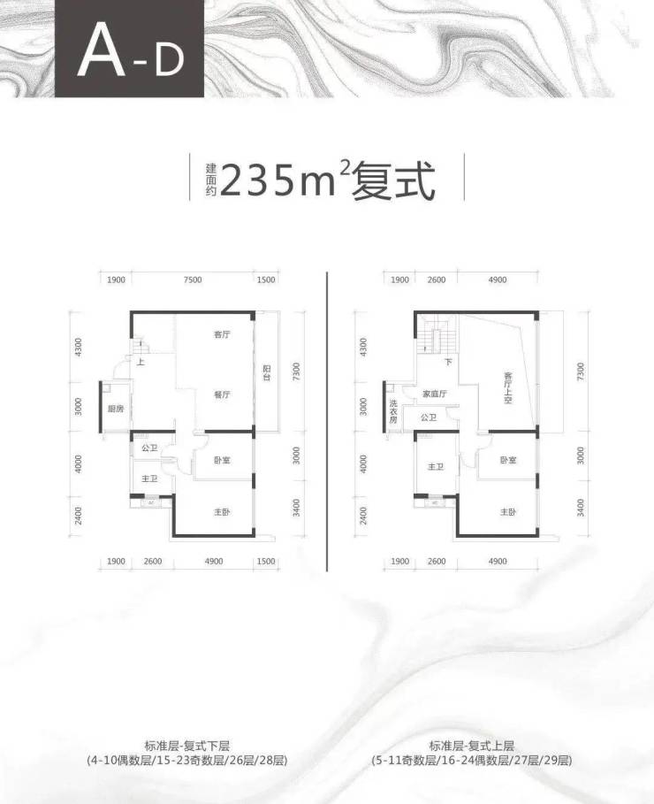 榕江云玺锦庭推出了多种户型供选择。A栋为大户型,有154㎡、153㎡4房2厅2卫,243㎡和258㎡复式4房2/3厅2卫;B座与C座为中小户型,户型区间约100-119㎡,包括2房2厅2卫100㎡、3房2厅2卫118㎡。所有户型均经过精心设计,空间利用率高,满足不同居住需求。项目共有三栋塔楼,都是住宅,一层二层为商业,三层以上为住宅,3栋分为A/B/C座,B座与C座在25层有连廊设计。