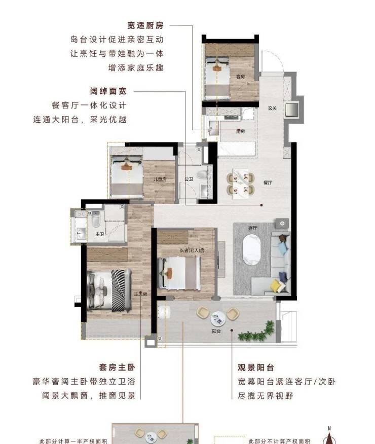 三开间朝南|12㎡宽阔阳台|超广角江景视野|270°主卧飘窗