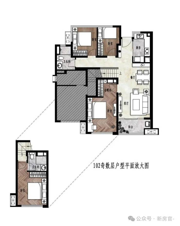 105㎡复式四房 咬合式设计+双卫+高使用率 130-154万