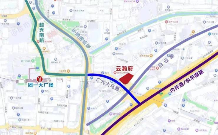 云瀚府项目位于越秀区广九大马路,距离地铁6号线团一大广场站步行约300多米。
