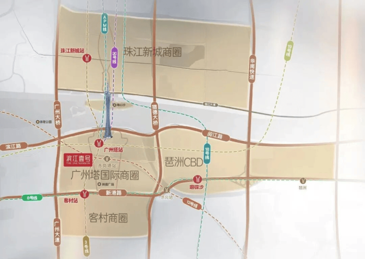 双轴交汇:地处珠江新城-广州塔、广州塔-琶洲两大轴线交汇处,与广州塔仅700米,高层可直望珠江新城天际线。珠江新城有111家总部企业(占全市30%),琶洲聚集超144栋甲级写字楼(贡献全市12%经济总量),两者叠加的产业势能,让项目自带“总部经济圈”的隐形价值。