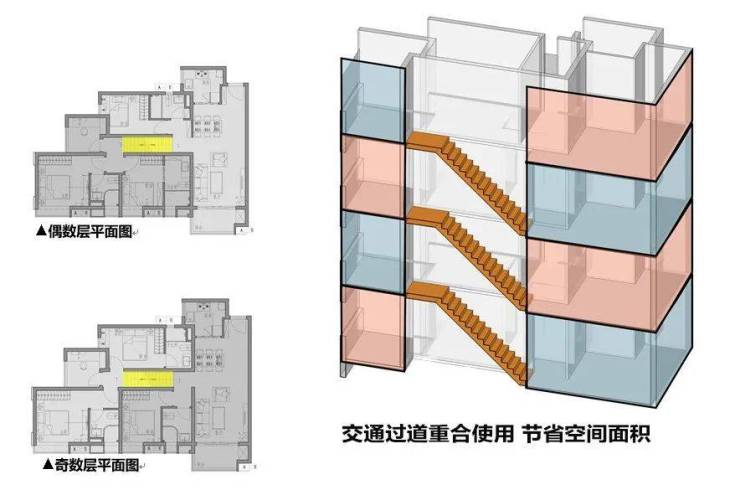 其一,是实用率接近100%,一套100㎡的单位,相当于一般平层120㎡的实用空间。