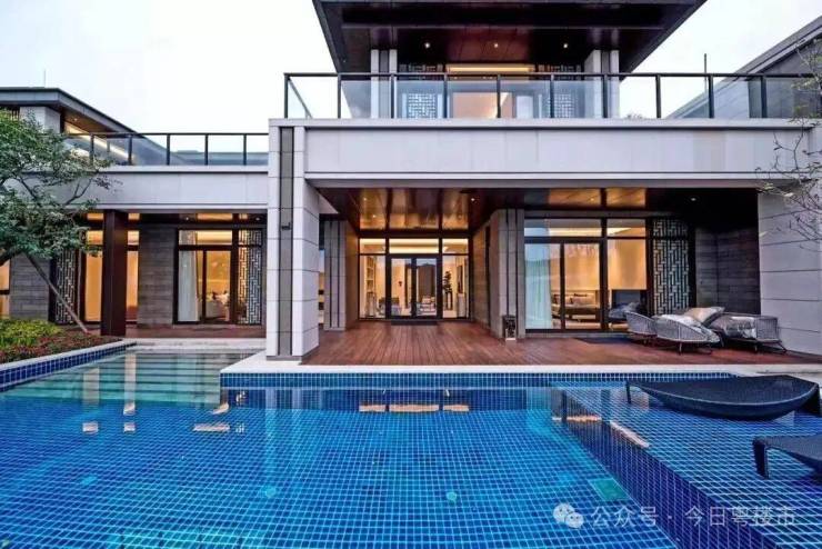 在如此舒展的庭院空间中,开辟出一片梦幻的水中乐园,丝毫不显得局促。